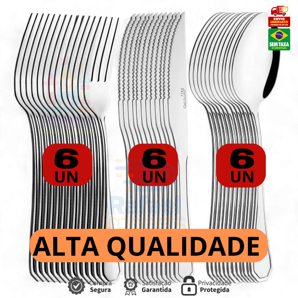 Jogo de Talheres 36 peças Aço Inox 12 Facas 12 Garfos de Mesa 12 Colheres Para Cozinha Casa